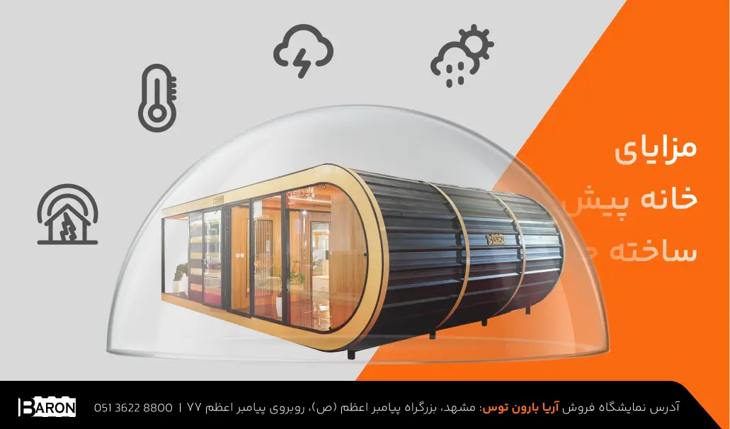 پیشرفت تکنولوژی در ساخت سازههای نوین باعث روی کار آمدن خانه های پیش ساخته شده است. سرعت اجرای بالا، قیمت مناسب، قابلیت جا به جایی سازه و … تنها گوشهای از ویژگیهای ساختمانهای پیش ساخته آریا بارون توس است. ما در آریا بارون توس به عنوان بزرگترین تولید کننده انواع خانه های آماده در ایران می توانیم به شما در انتخاب بهترین نوع ساختمان پیش ساخته، بر حسب نیاز شما کمک کنیم تا بتوانید علاوه بر دادن کمترین هزینه ممکن در قبال خرید خانه پیش ساخته، دارای بهترین امکانات باشید. جهت اطلاعات و مشاهده کاتالوگ محصول بر روی لینک های زیر کلیک کنید.