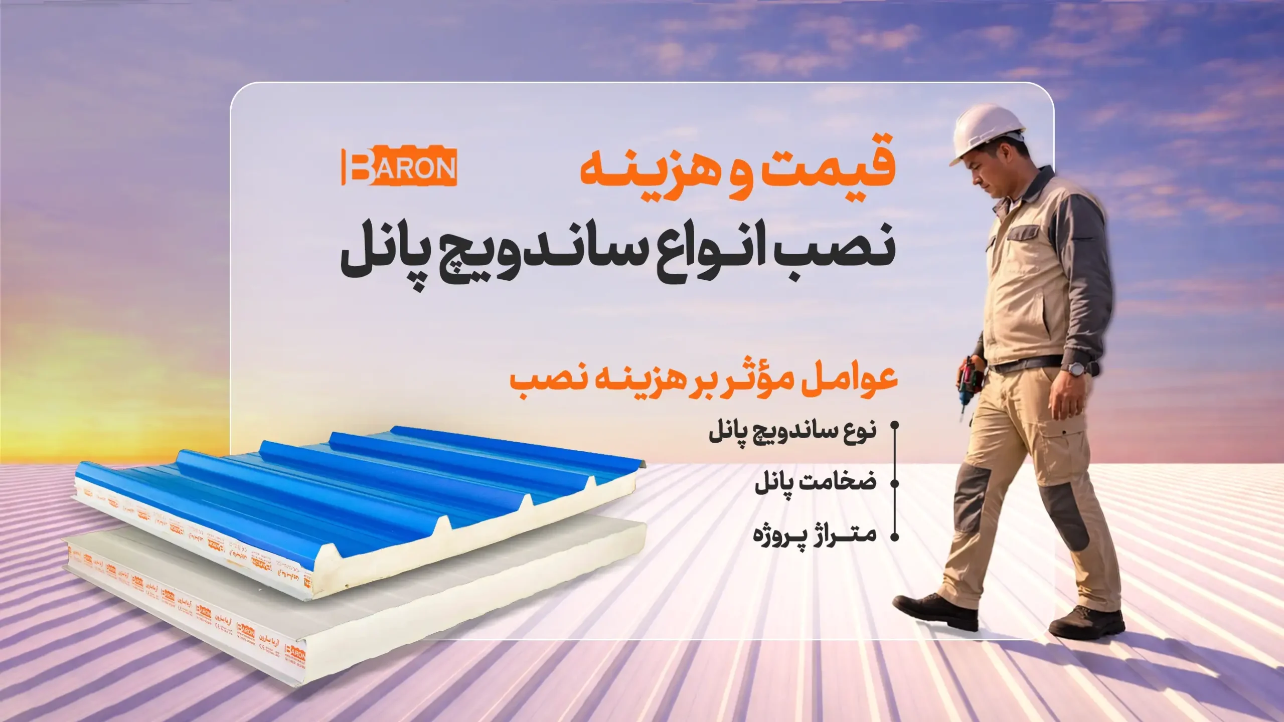 - نوع ساندویچ پانل: قیمت نصب ساندویچ پانلهای سقفی و دیواری متفاوت است. همچنین، نوع فوم و ورق استفاده شده نیز بر هزینه تأثیرگذار است.